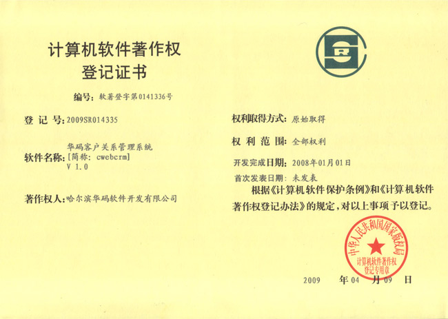 national copyright certificate about Chinese customer relationship management system and web content management systems
